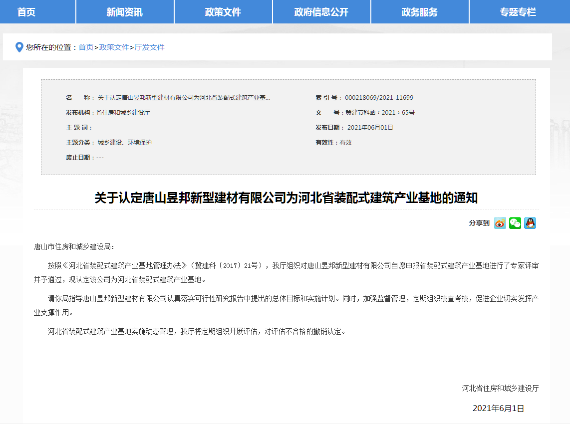 6月1日,省住房和城鄉(xiāng)建設(shè)廳印發(fā)通知,認(rèn)定河北大成建筑設(shè)計(jì)咨詢有限公司、中鐵建華北建筑科技有限公司、唐山昱邦新型建材有限公司、河北中冶智群裝配式建筑科技有限公司為河北省裝配式建筑產(chǎn)業(yè)基地。至此,我省已有21處國(guó)家裝配式建筑產(chǎn)業(yè)基地,24處河北省裝配式建筑產(chǎn)業(yè)基地。另外,我省還有4個(gè)國(guó)家裝配式建筑示范城市,即石家莊、唐山、邯鄲、秦皇島;4個(gè)河北省裝配式建筑示范縣,即盧龍縣、唐山豐潤(rùn)區(qū)、望都縣、涉縣。
