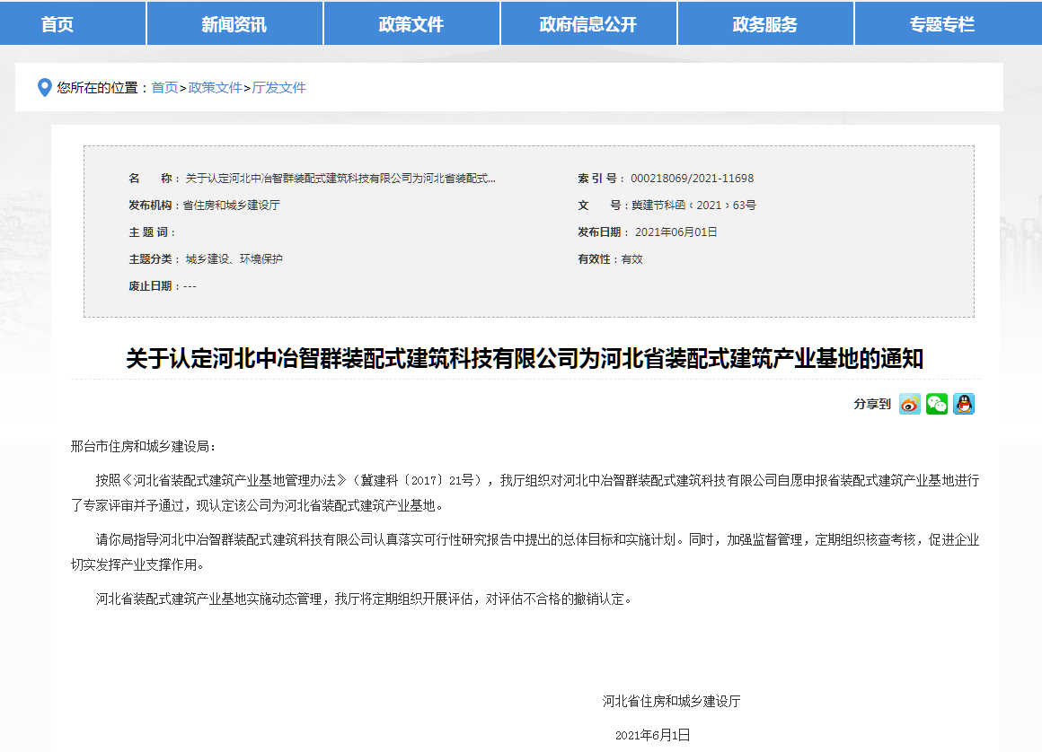 近日,河北省住房和城鄉(xiāng)建設(shè)發(fā)布:《我省新認(rèn)定4處“河北省裝配式建筑產(chǎn)業(yè)基地”》,分別是河北大成建筑設(shè)計(jì)咨詢有限公司、中鐵建華北建筑科技有限公司、唐山昱邦新型建材有限公司、河北中冶智群裝配式建筑科技有限公司。