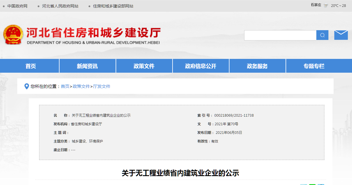關(guān)于無工程業(yè)績省內(nèi)建筑業(yè)企業(yè)的公示